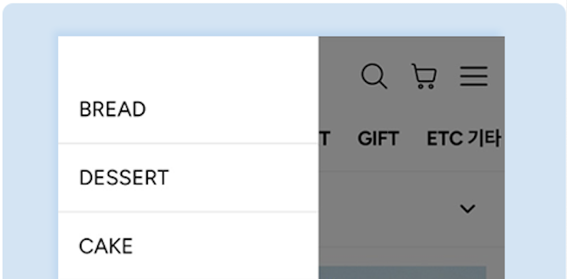 메뉴 아이콘을 누르면 선택된 아이콘으로 변경됩니다.
